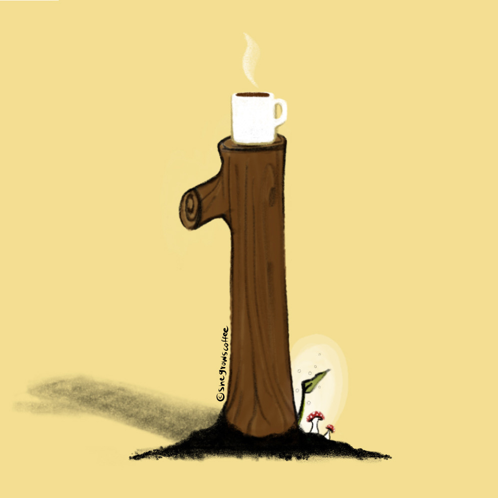 Each of these creations was made by me and posted to She Grows Coffee Instagram during April/May 2022; And during this time, the organization, One Tree Planted, was busy planting 1 tree for every illustration created (a major reason for my participation) … So the following illustrations don’t just generate coffee awareness, they also planted 6 trees ♡
